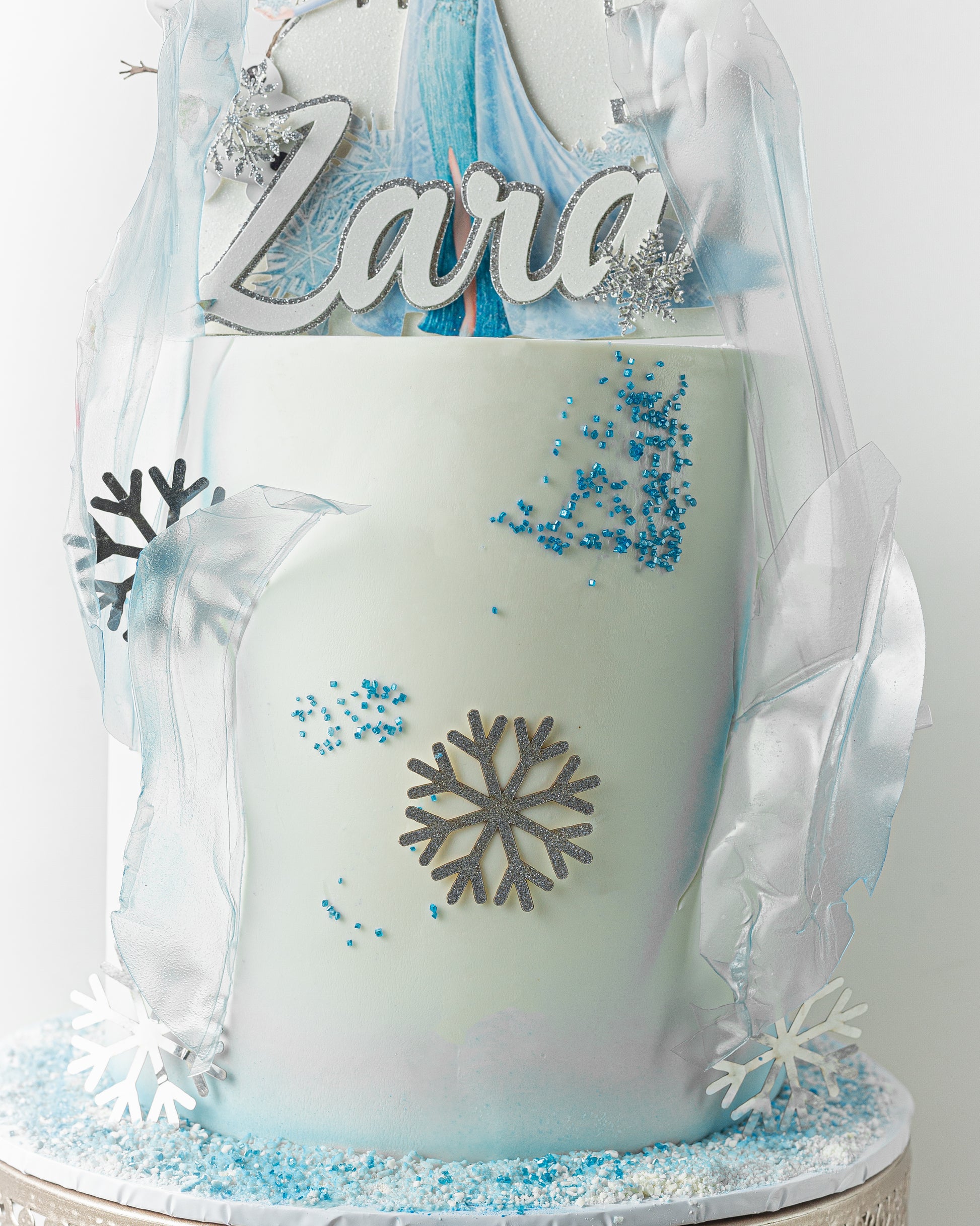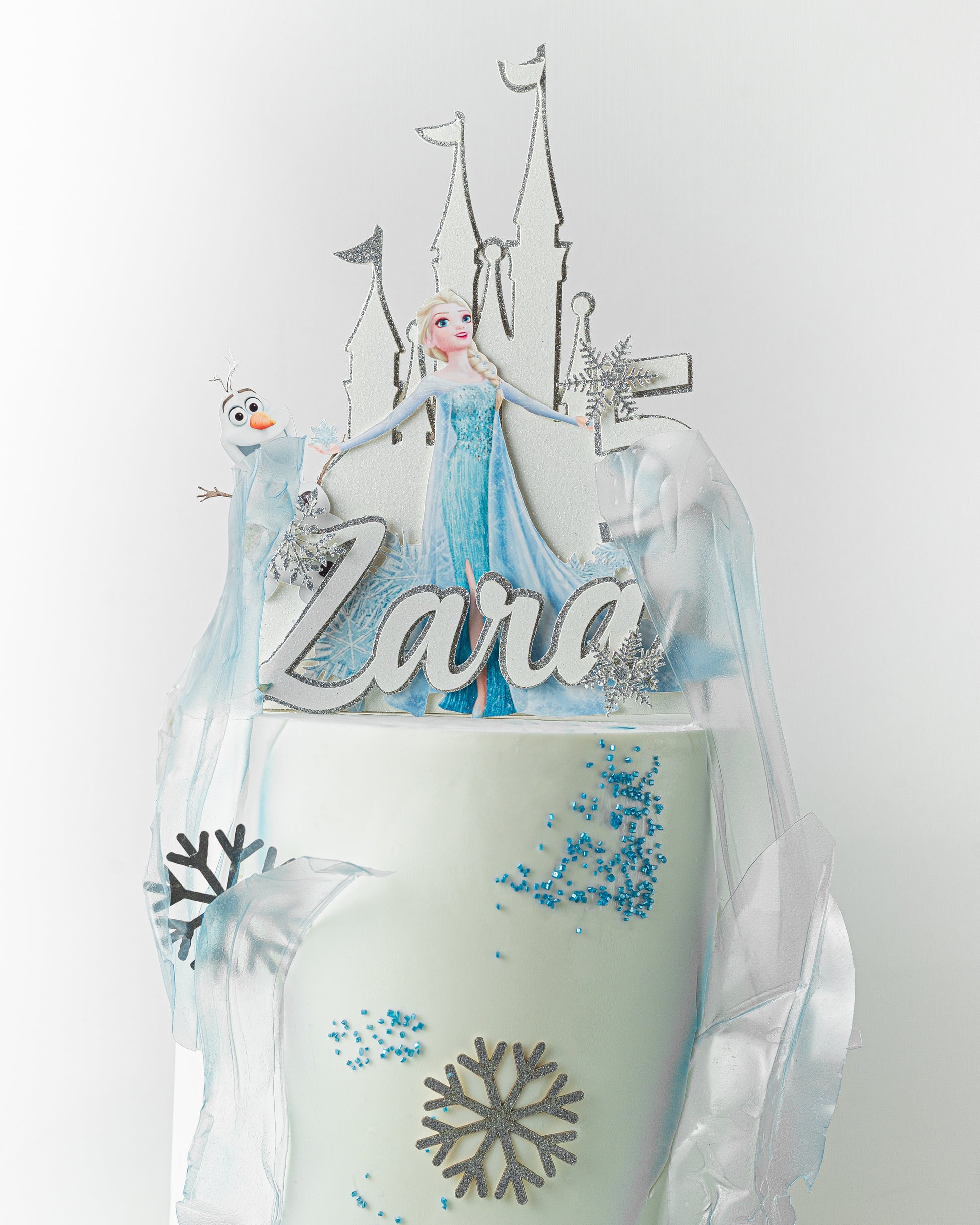 Frosted Fantasy is an enchanting, icy-blue cake inspired by fairytales and frozen castles. Adorned with snowflakes, shimmering tulle, and a glittery topper, it’s perfect for any princess-themed birthday. Personalize it with a name, age, or even character accents to make their day extra dreamy.