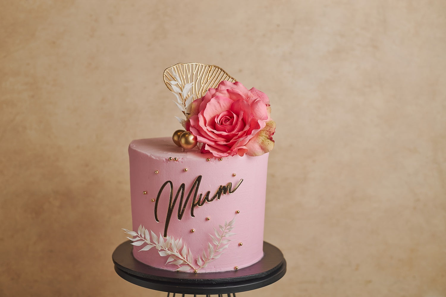 Love You Mum is a heartfelt tribute wrapped in blush pink buttercream, adorned with a vibrant rose, gold accents, and delicate ferns. It's elegant, modern, and full of love — perfect for Mother’s Day, birthdays, or a thank-you celebration. Customize with names, floral colors, or a heartfelt message.