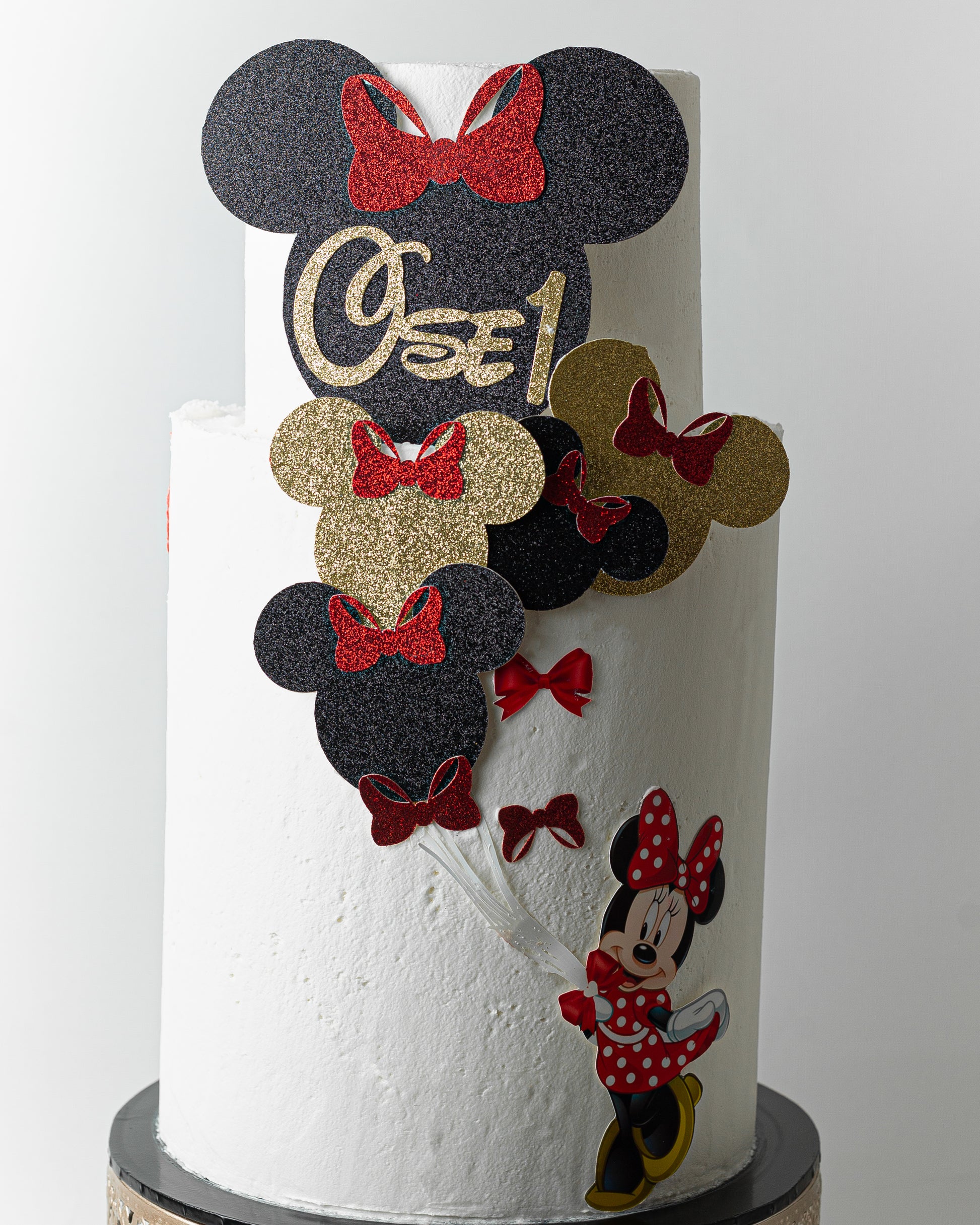 It's a two-tier cake with Minnie Mouse on it! Made with creamy frosting, perfect for a special kiddo who loves dancing and Minnie! Available in a buttercream icing. Can be ready in 7 days and must be picked up.