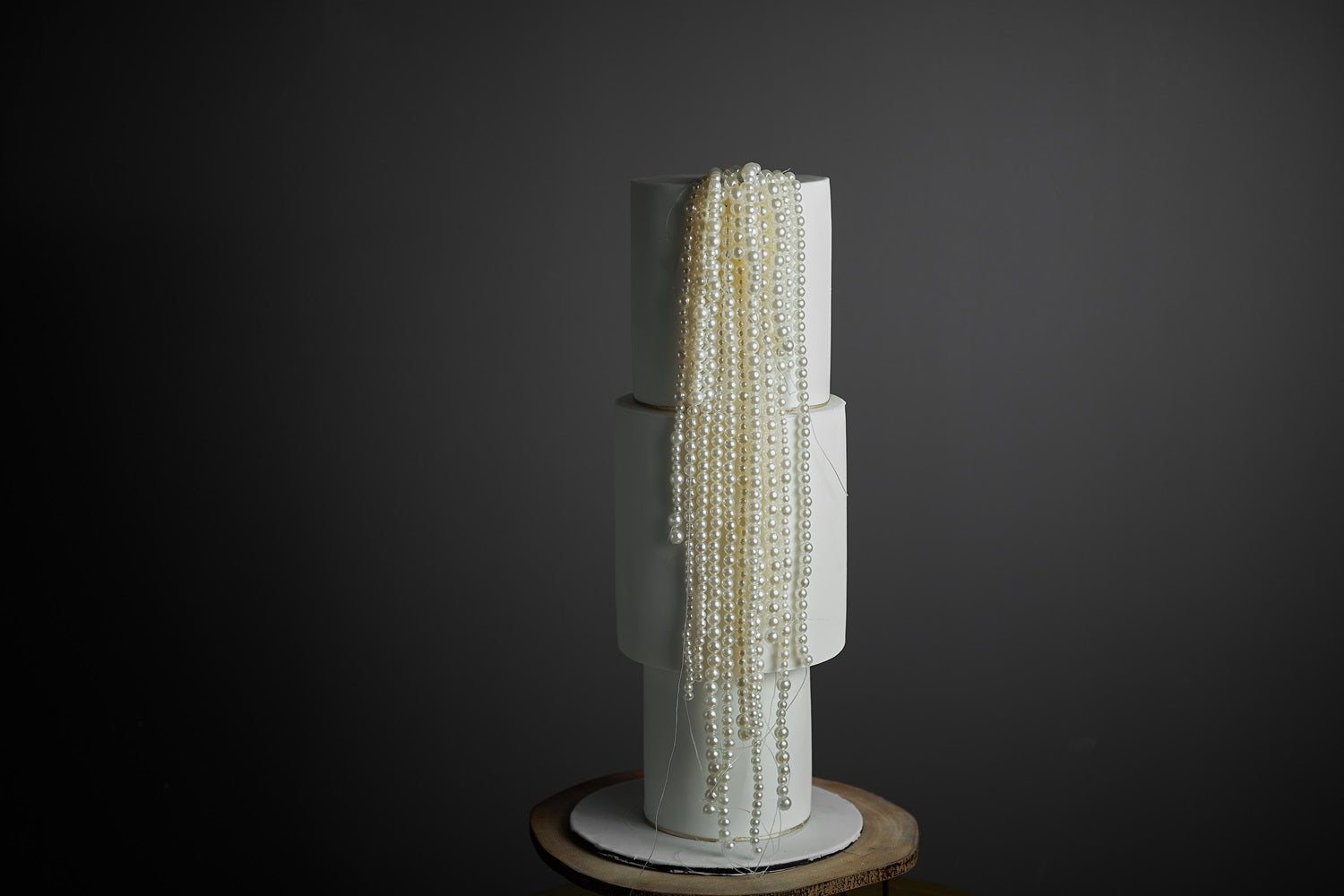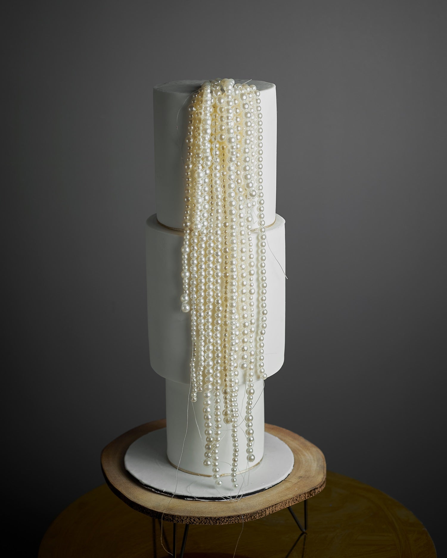 Pearl Drop features a minimalist white finish adorned with delicate, cascading pearl strands for a graceful, vintage-meets-modern vibe. Perfect for weddings, anniversaries, or milestone birthdays. Its timeless style makes it endlessly customizable—choose pearl tones, add initials, or include floral toppers to make it uniquely yours