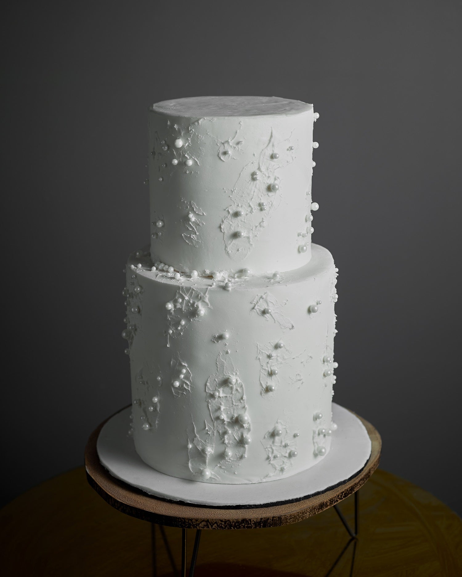 Pearl Whisper is a quiet showstopper smooth white buttercream with subtle texture, gently adorned with tiny sugar pearls and blossoms. Its graceful, modern look makes it a favorite for weddings, engagement parties, or bridal showers. Available with floral toppers, monograms, or custom colors to suit your celebration.