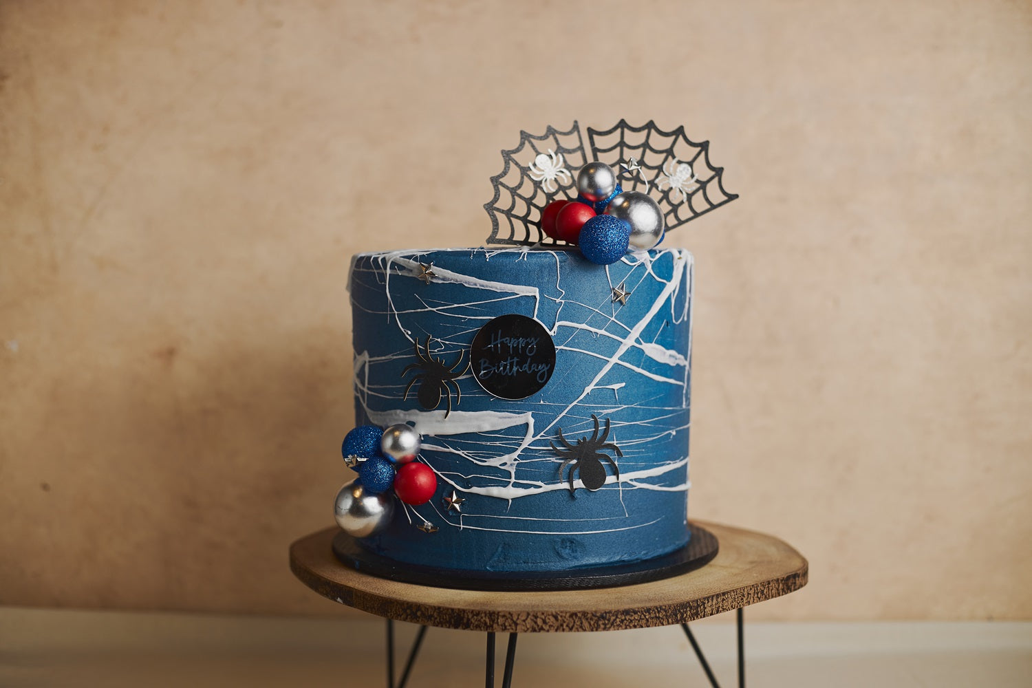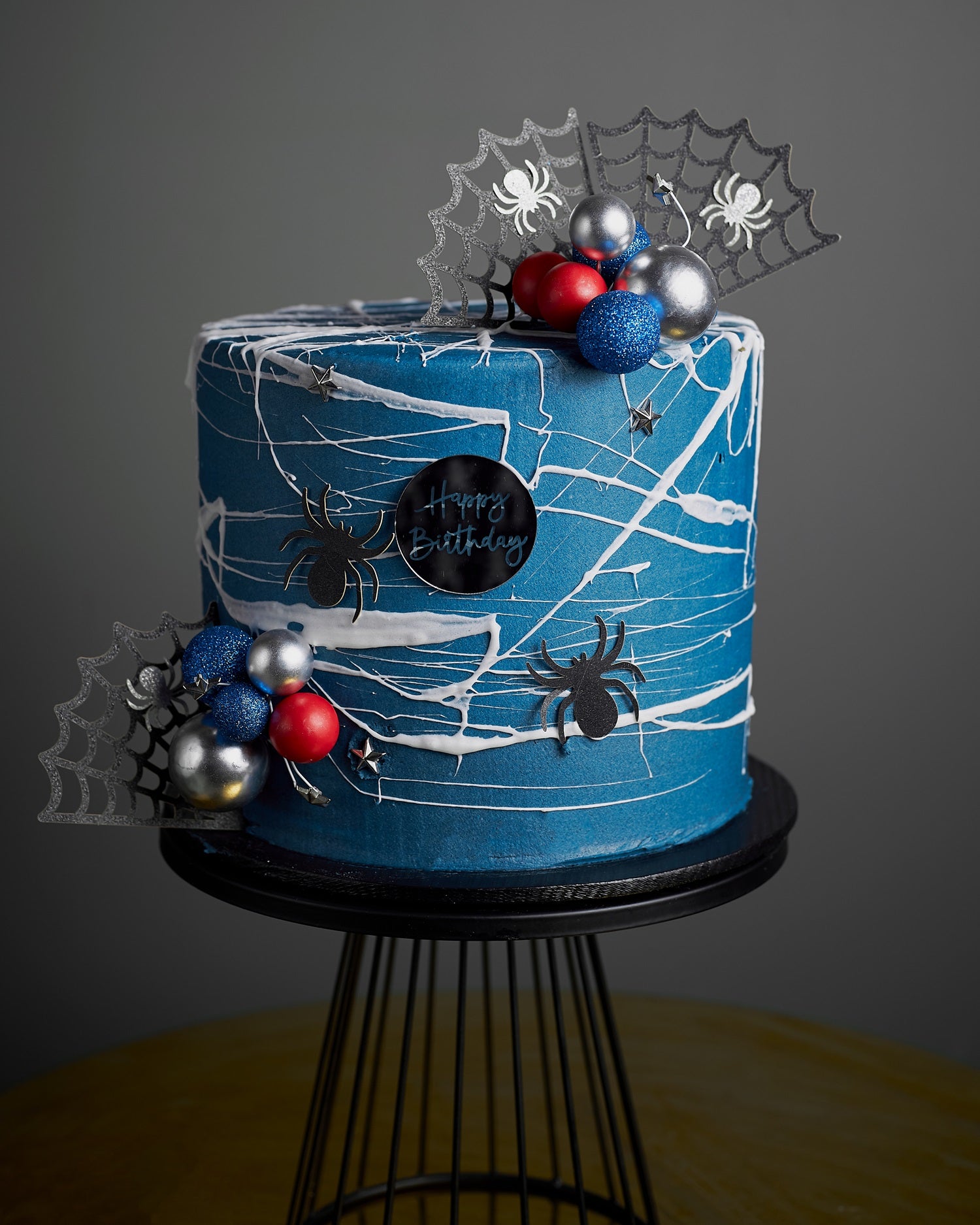 Spider Pop brings energy to the party with its vivid blue base, silver web streaks, and playful spider toppers. Finished with festive red and silver spheres, it’s perfect for kids’ birthdays, comic-themed parties, or Halloween. Customize with name tags, toppers, or favorite colors to match your celebration theme.